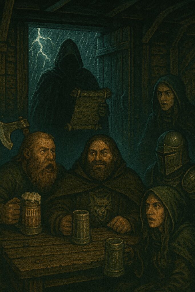 The door banged open again — but no wind followed. No rain. Just cold. A bone-deep chill that silenced the inn in an instant.