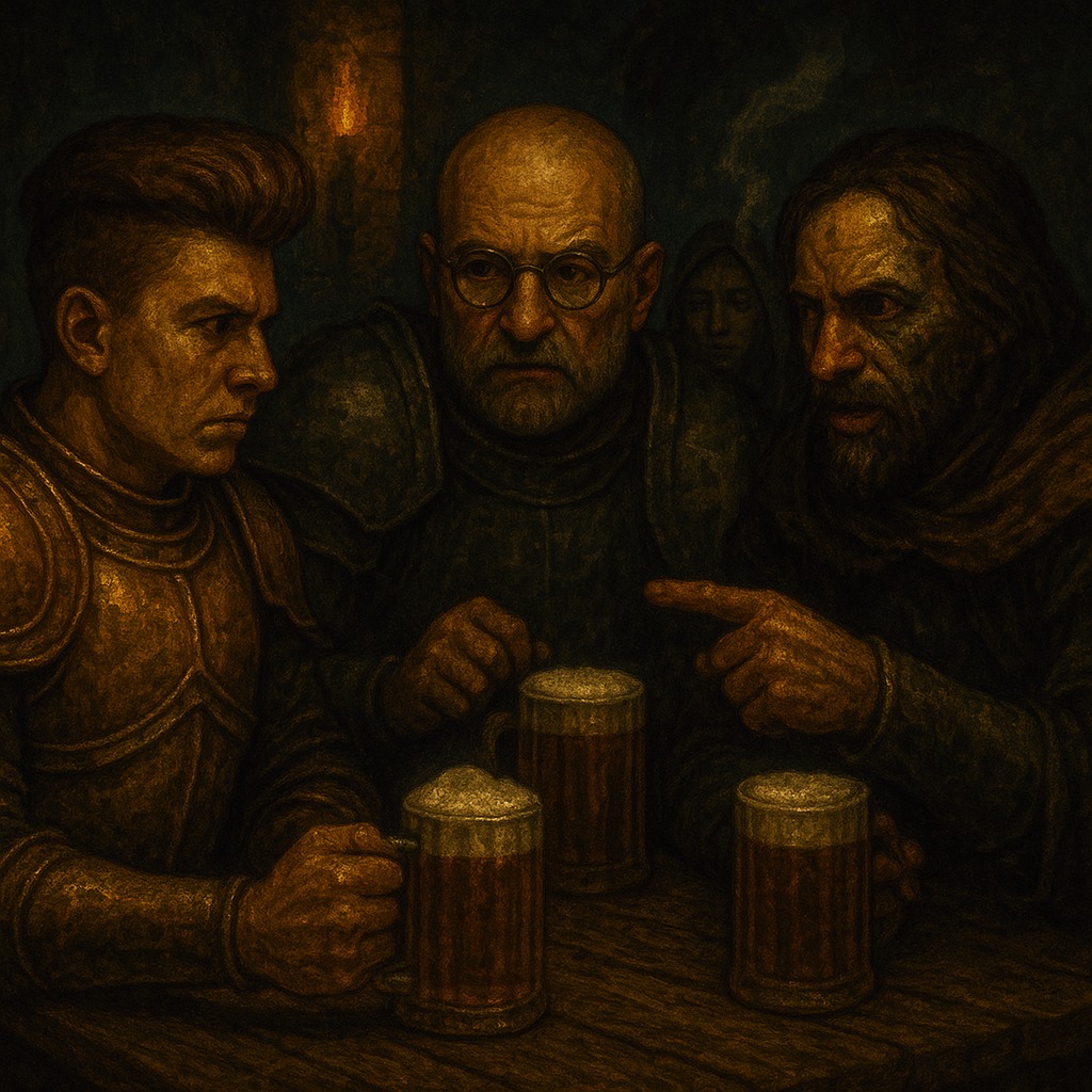 Gleg the Brewmaster barked out a laugh as he slid foaming mugs across the counter. “First round’s on the house. Next one’s on the dice — win, and drink free. Lose, and tell a secret.”