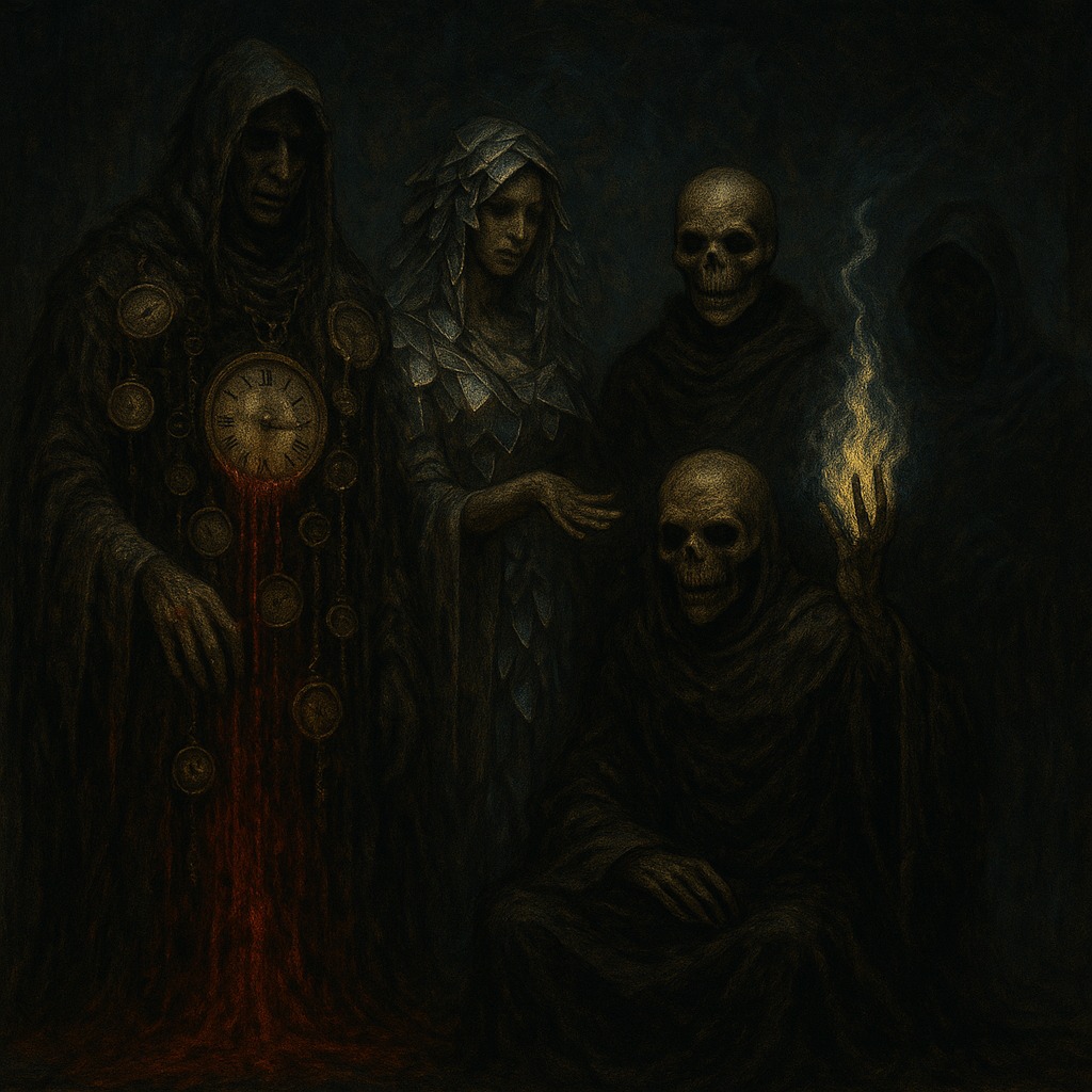 The hum of the Aetharion grows deeper, resonating not just in the walls, but in their very bones. Each of the seven feel it clawing through their minds, tasting memories, weighing futures.
