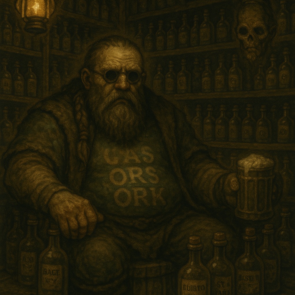 He walked into a room lit by the soft glow of lanterns shaped like mugs, the scent of roasted meat and old wood hanging thick in the air. Shelves upon shelves of bottles lined the walls — each one sealed, labeled in swirling golden script.