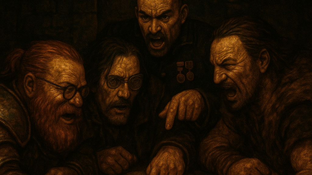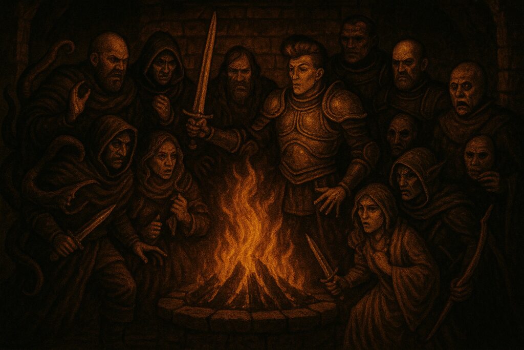 The room glowed with the map’s soft light. Shadows flickered along the walls, warped by the dancing flame. Ten figures stood around the circular table, none eager to be the first to speak — or the first to trust.