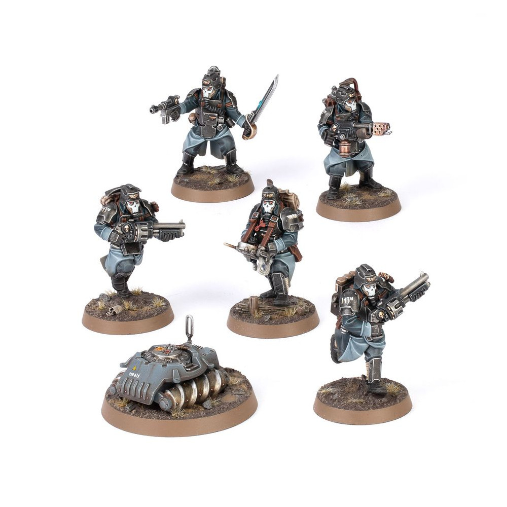 Krieg Combat Engineers are renowned for their skill as demolitions experts, sappers, and close-quarters trench fighters. It is their task to accompany the first waves of a Death Korps assault, clearing razorwire and defusing mines before bringing their shotguns and trench clubs to bear upon the enemy.