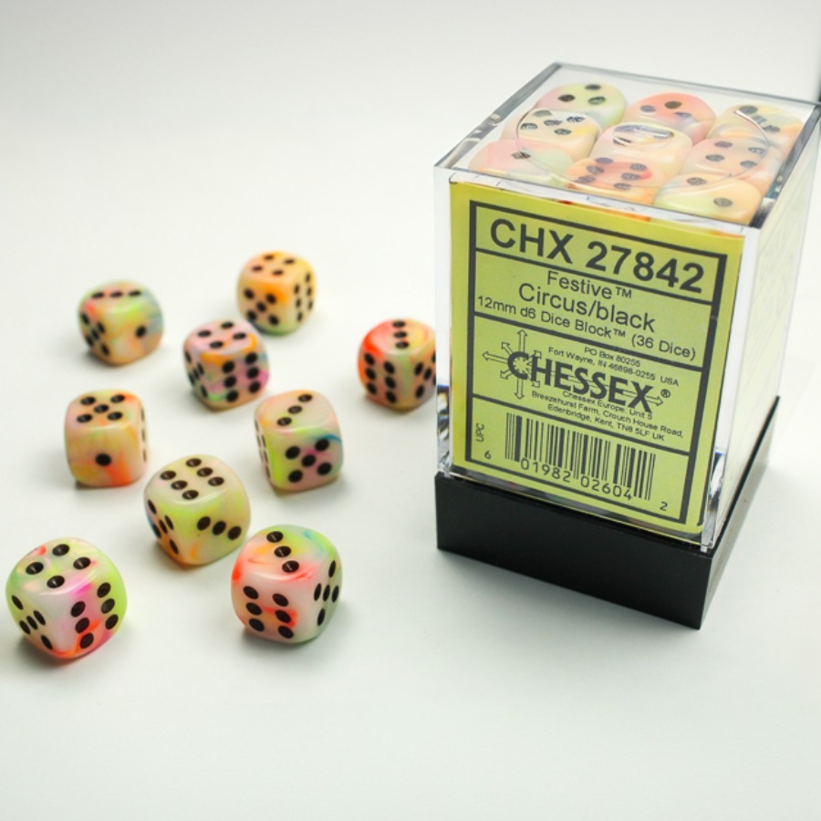 Chessex – Festive Circus/black 12mm d6 Dice Block (36 dice)