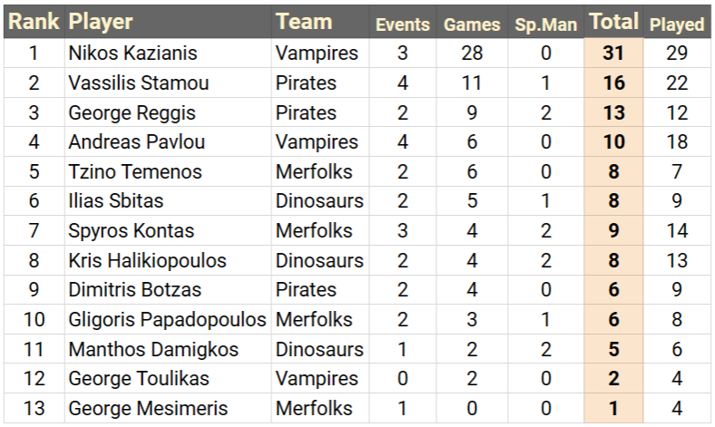 Ο Νικηφόρος είναι και μαθηματικά ο πρωταθλητής της λίγκας. Έδωσε υπόσχεση ότι δεν θα ξαναπαίξει τη συγκεκριμένη λίστα στα φιλικά παιχνίδια, μάλλον για να συνεχίσει να έχει φίλους. Θερμά συγχαρητήρια, αν και θα περιμένουμε την επίσημη λήξη για το τυπικό της διαδικασίας.