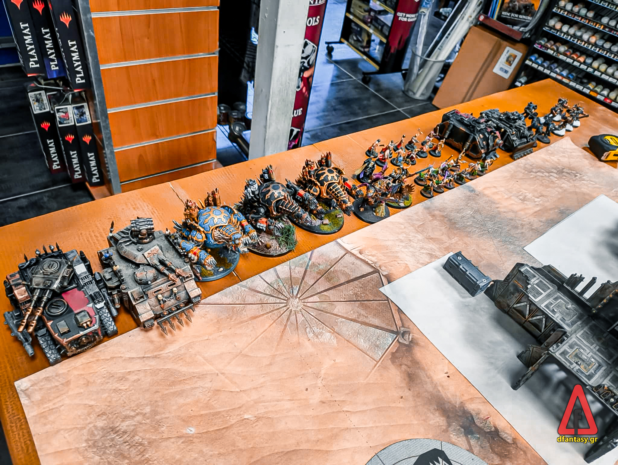 Και κάπου ανάμεσα, ο Κώστας με τους Black Templars του – ίσως για τελευταία φορά – έκανε το τραπέζι του έργο τέχνης. Δεν ξέρουμε αν κέρδισε. Δεν έχει σημασία. Το σίγουρο είναι ότι έφυγε με σεβασμό. Ακόμα και από τον Γώγο, που με το νέο του codex επέστρεψε – αν και λίγο αργά στις νίκες.