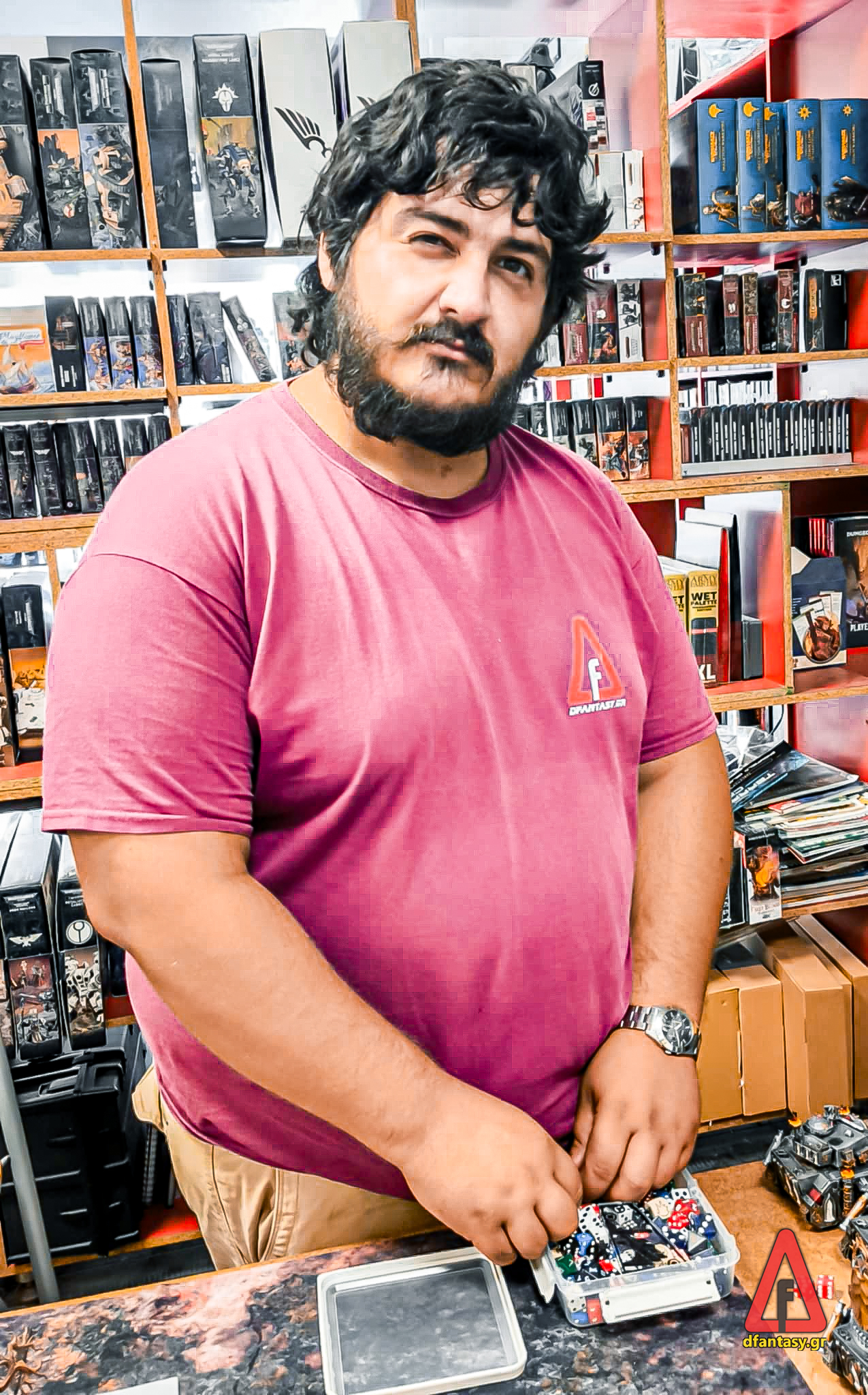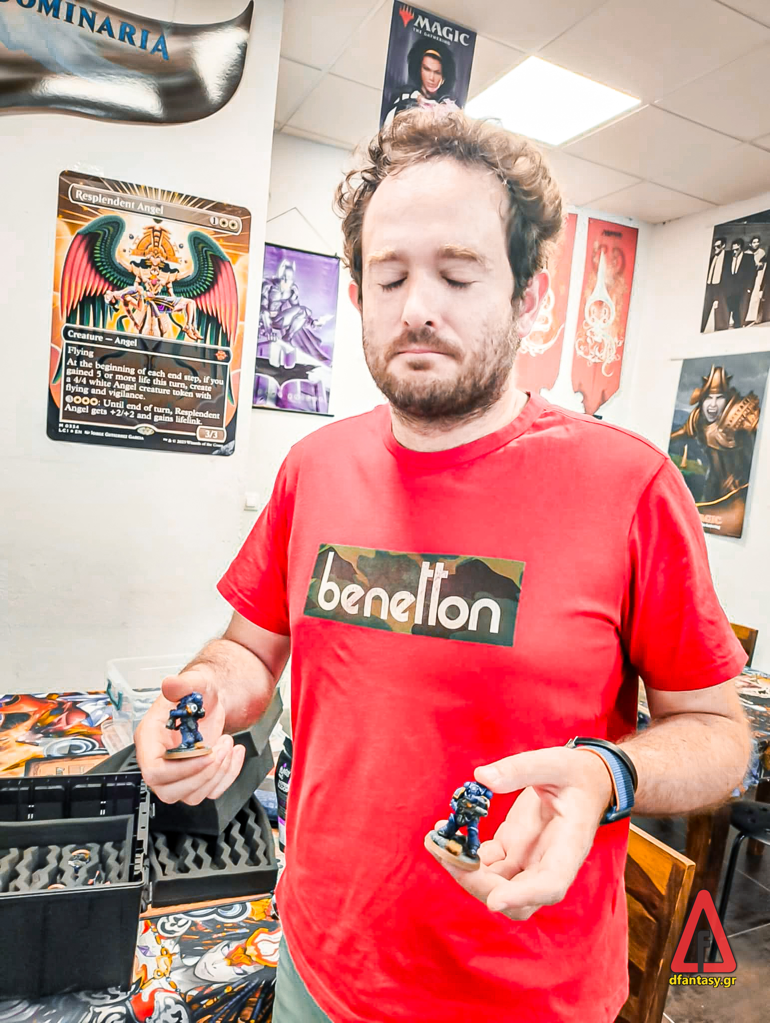 Στην άκρη του μαγαζιού, κάποιοι βάφανε μινιατούρες — προφανώς πιστεύοντας ότι αν δεν τους κάτσει καλό draft, θα περάσουν στο Warhammer Plan B.